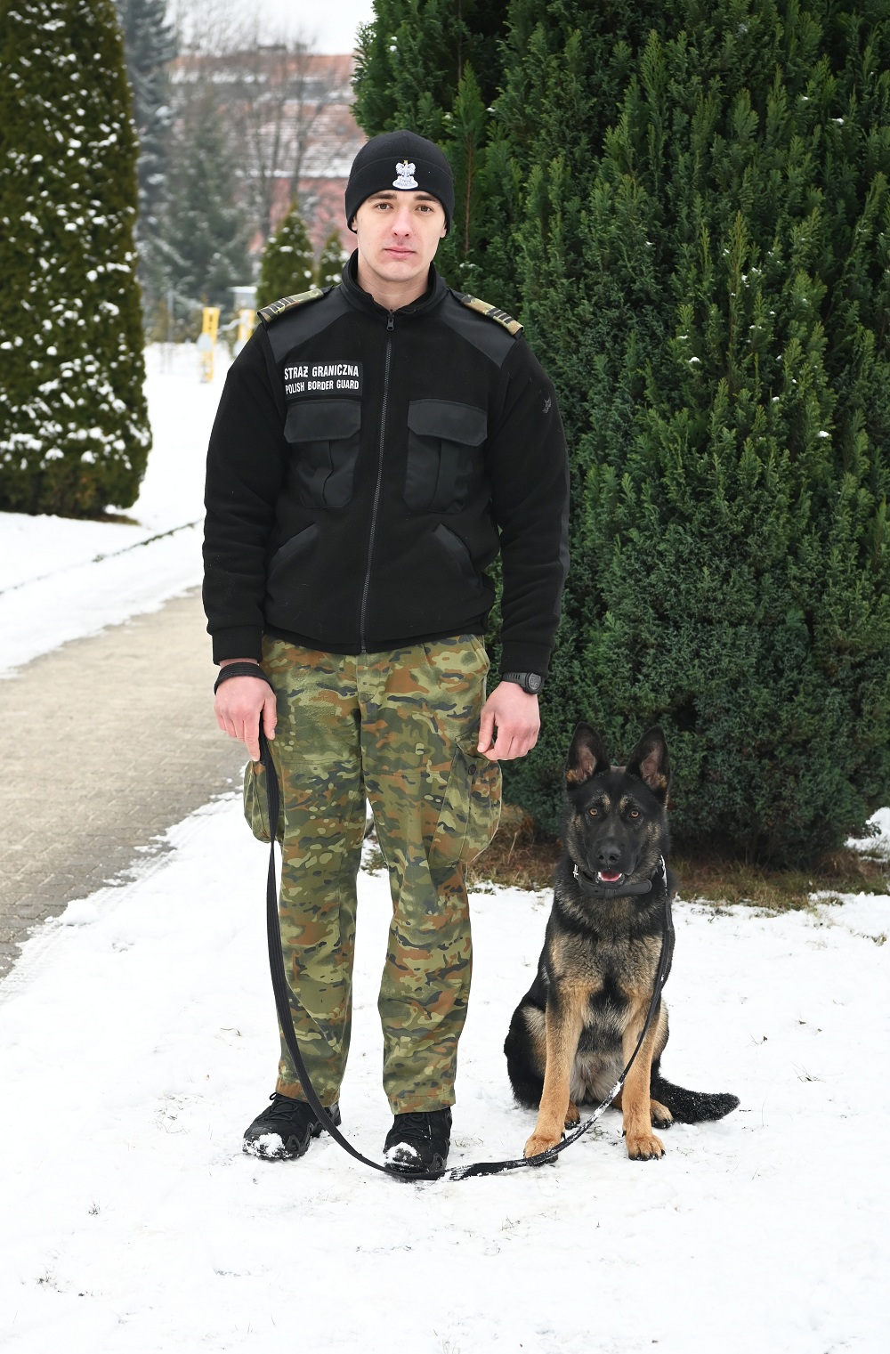 Funkcjonariusz Podlaskiego Oddziału SG z psem CARMEL