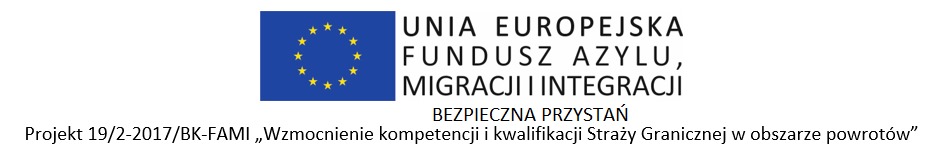 Kurs był współfinansowany z Funduszu Azylu, Migracji i Integracji w ramach projektu 19/2-2017/BK-FAMI "Wzmocnienie kompetencji i kwalifikacji Straży Granicznej w obszarze powrotów".