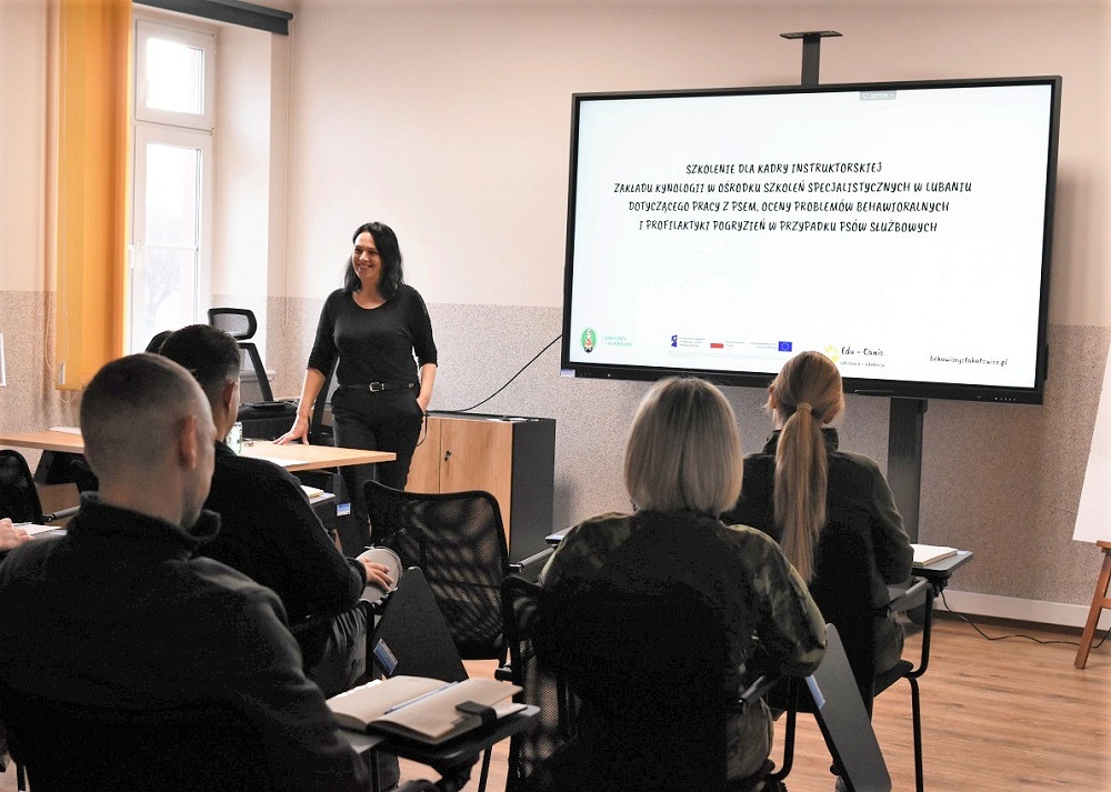Szkolenie przeprowadzone zostało przez Barbarę Szczygieł – behawiorystę z firmy Edu-Canis. Było to pierwsze z cyklu szkoleń, zaplanowanych w projekcie nr IZGW.01.01-IZ.00-0004/24 pn. „Wdrożenie rekomendacji z misji ewaluacyjnej Schengen w zakresie zwiększenia potencjału psów tropiąco-patrolowych w ochronie zewnętrznej granicy lądowej UE”, finansowanego w ramach Funduszu Zintegrowanego Zarządzania Granicami, Instrument Wsparcia Finansowego na rzecz Zarządzania Granicami i Polityki Wizowej na lata 2021-2027, mających na celu podniesienie kompetencji zawodowych kadry dydaktycznej OSS SG w Lubaniu, odpowiedzialnej za szkolenie psów służbowych.