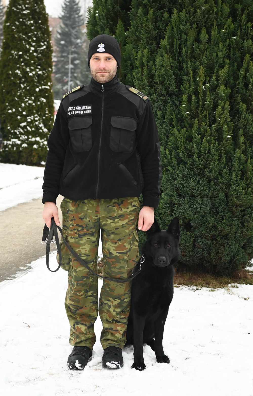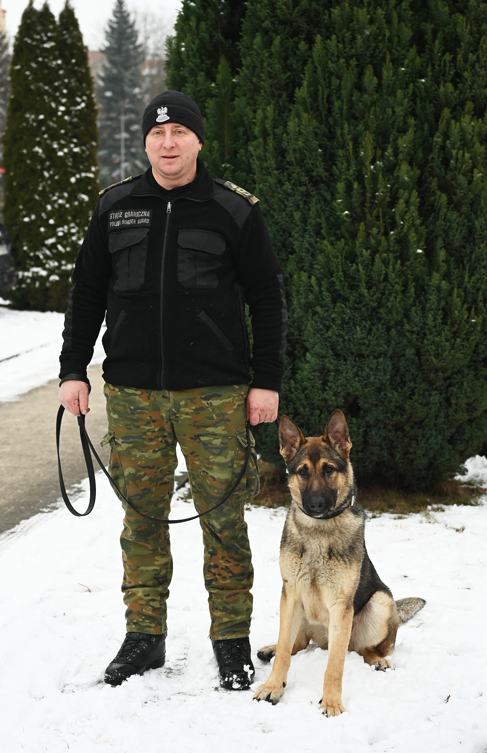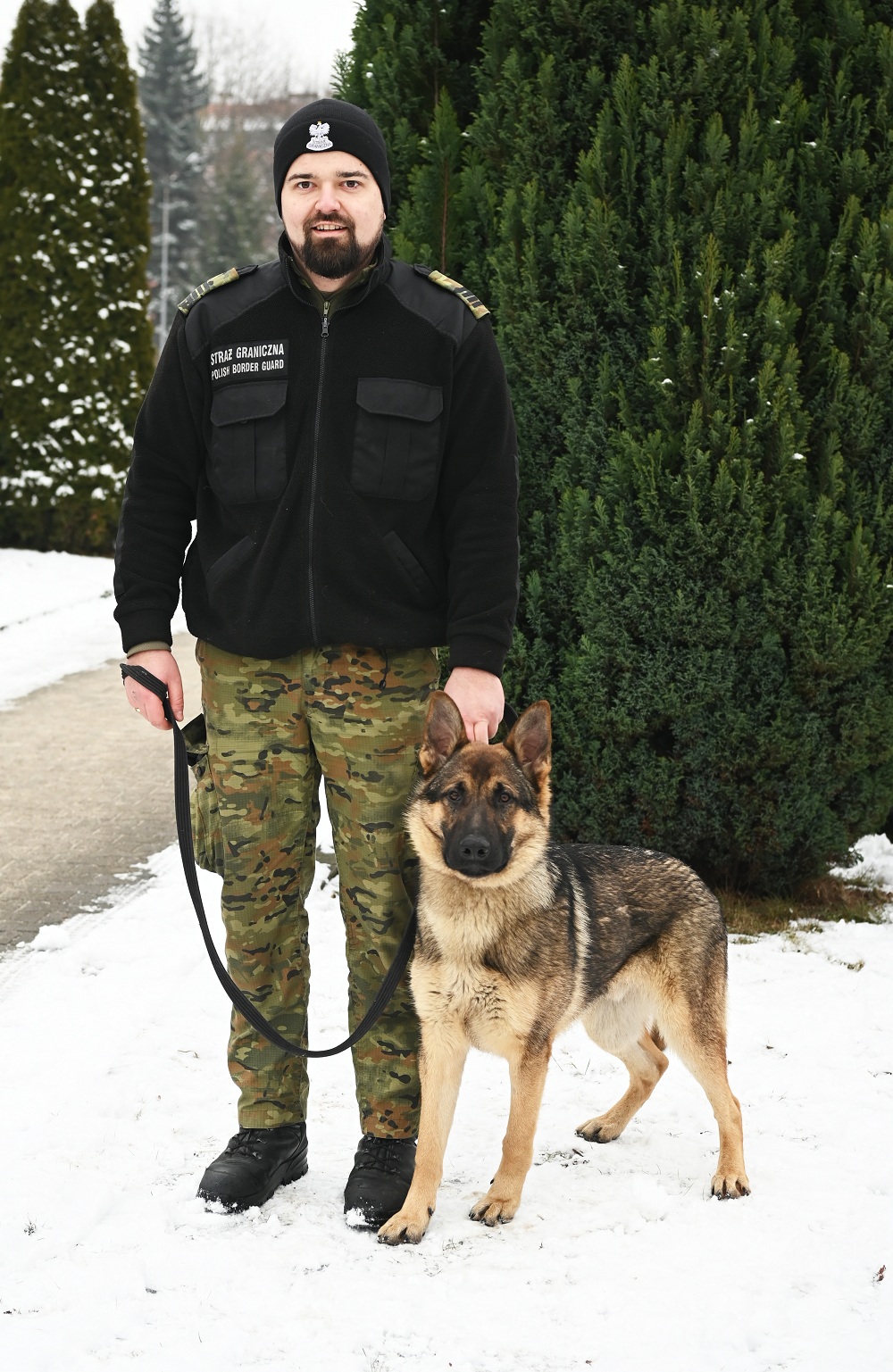 Funkcjonariusz Podlaskiego Oddziału SG z psem CARMEL