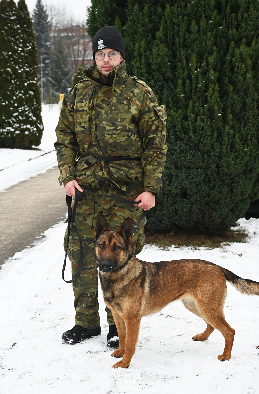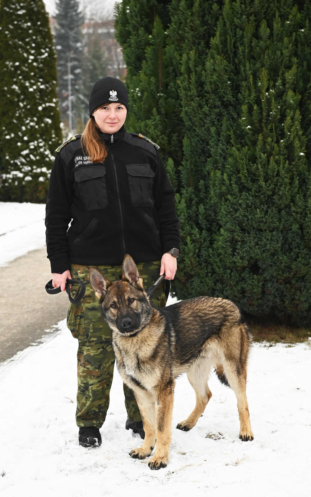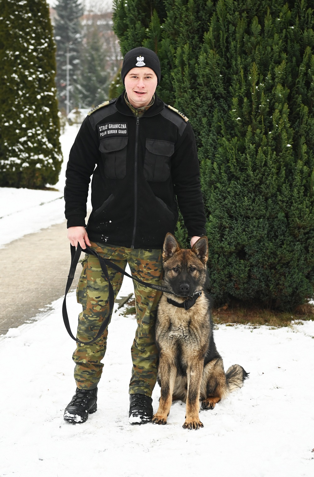 Funkcjonariusz Podlaskiego Oddziału SG z psem CARMEL