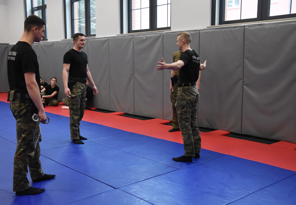 Część praktyczna szkolenia obejmowała trening strzelecki, oraz ćwiczenia technik interwencji z użyciem środków przymusu bezpośredniego. Zajęcia realizowano w oparciu o przygotowane kazusy, odzwierciedlające rzeczywiste sytuacje służbowe. Ćwiczenia prowadzono w pomieszczeniach dla osób zatrzymanych, gdzie uczestnicy szkolenia doskonalili umiejętności reagowania na zagrożenia, zapewnienia bezpieczeństwa oraz właściwego stosowania środków przymusu bezpośredniego. Ponadto część praktyczna obejmowała ćwiczenia związane z transportem osób zatrzymanych przy użyciu pojazdu specjalnego, z uwzględnieniem zasad bezpieczeństwa, ochrony osób transportowanych oraz współdziałania funkcjonariuszy.