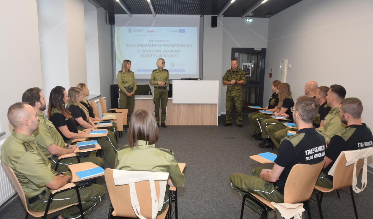 W szkoleniu udział wzięli funkcjonariusze z Nadwiślańskiego, Podlaskiego, Nadbużańskiego, Bieszczadzkiego, Śląskiego, Nadodrzańskiego i Morskiego Oddziału SG. Kurs adresowany był do funkcjonariuszy i pracowników pionu ds. cudzoziemców, prowadzących czynności w stosunku do osób ubiegających się o udzielenie ochrony międzynarodowej na terytorium RP. Głównym celem spotkania było nabycie i pogłębienie wiedzy w zakresie realizacji procedury przyjęcia wniosku o udzielenie ochrony międzynarodowej. Zaprezentowane zostały regulacje dotyczące azylu i uchodźców wynikające z prawa unijnego, przekazywania i przyjmowania osób w ramach mechanizmu dublińskiego. Przedstawiono kierunki prawa międzynarodowego związanego z tzw. pakietem azylowym. Omówiono rolę organów w postępowaniu uchodźczym, skupiając się na czynnościach Straży Granicznej, Szefa Urzędu ds. Cudzoziemców, Radę ds. Uchodźców oraz Wojewódzkiego i Naczelnego Sądu Administracyjnego. Słuchacze mieli możliwość kształcenia swoich umiejętności w zakresie realizacji procedury przyjęcia wniosku o udzielenie ochrony międzynarodowej, sporządzenia dokumentacji służbowej oraz właściwego trybu postępowania, uwzględniającego sytuacje uzasadniające zatrzymanie i umieszczenie cudzoziemca w strzeżonym ośrodku.