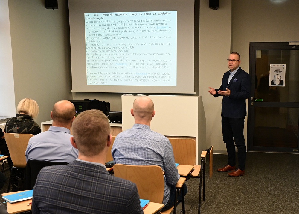 Głównym celem warsztatów było przedstawienie orzecznictwa sądowego krajowego i międzynarodowego w kontekście ochrony cudzoziemców przed zobowiązaniem do powrotu oraz zagadnień związanych z praktycznymi aspektami prowadzenia postępowań i wydawania decyzji administracyjnych w sprawach udzielania zgody na pobyt ze względów humanitarnych oraz zgody na pobyt tolerowany. Podczas spotkania przeprowadzono moderowany panel dyskusyjny, w ramach którego uczestnicy mieli możliwość omówienia kluczowych i problemowych zagadnień związanych z prowadzonymi postępowaniami. Dyskusja odbywa się z udziałem eksperta zewnętrznego, który dzielił się wiedzą specjalistyczną oraz dobrymi praktykami, a także odpowiadał na pytania uczestników. Zastosowana forma pracy sprzyjała wymianie doświadczeń, analizie rzeczywistych przypadków oraz wypracowaniu rekomendacji możliwych do wykorzystania w praktyce służbowej.
